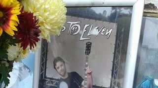 În faţă la Pionierul, la un an de la Colectiv, tineri, părinţi, oameni veniţi din alte oraşe se opresc şi se uită îndelung la fotografii, aprind lumânări, se reculeg în faţa crucilor, a fotografiilor, plâng.