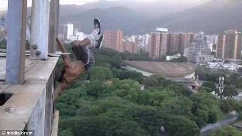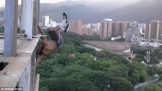 Un atlet a fost surprins atrenandu-se pe o cladire inalta din Venezuela, fara sa aiba niciun echipament de protectie. O inregistrare il arata pe aventurierul Gabriel Isaac Gutierrez Aray, in varsta de 26 de ani, cum realizeaza o serie de exercitii dificile pe o cladire inalta din oras.