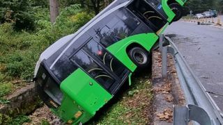 „În urma unor intervenţii tehnice efectuate la nivelul unui mijloc de transport public de persoane, ce se afla staţionat pe strada Podul Creţului din municipiul Braşov (zona Pietrele lui Solomon), vehiculul a părăsit partea carosabilă, răsturnându-se în canalul de colectare al apei pluviale”, a informat