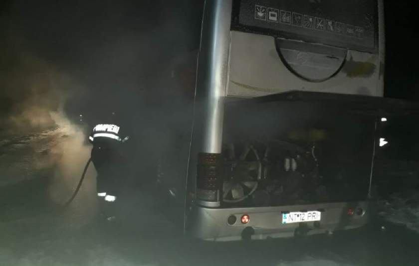”Incendiul se manifesta la una din rotile de pe axa spate, în autocar fiind aproximativ 30 de persoane care s-au autoevacuat până la sosirea forțelor de intervenție ”, potrivit ISU Neamț.