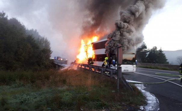 Peste 60 de pompieri au intervenit de urgenta pentru stingerea flacarilor. "Doferii de camioane care au oprit pe autostrada au incercat sa ajute la stingerea incendiului, dar nu au reusit. Cand au ajuns pompierii, autocarul era deja complet distrus de flacari.