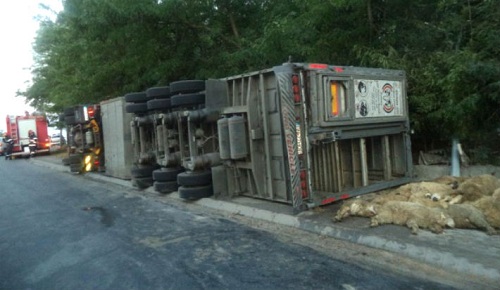 În urma accidentului, mai multe animale care erau trasnportate au murit.