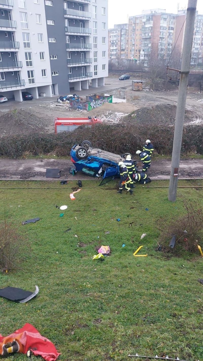 O autospecială pentru descarcerare, o autospecială de stingere cu apă și spumă și un echipaj SMURD intervin la fața locului. O persoană a fost rănită.
