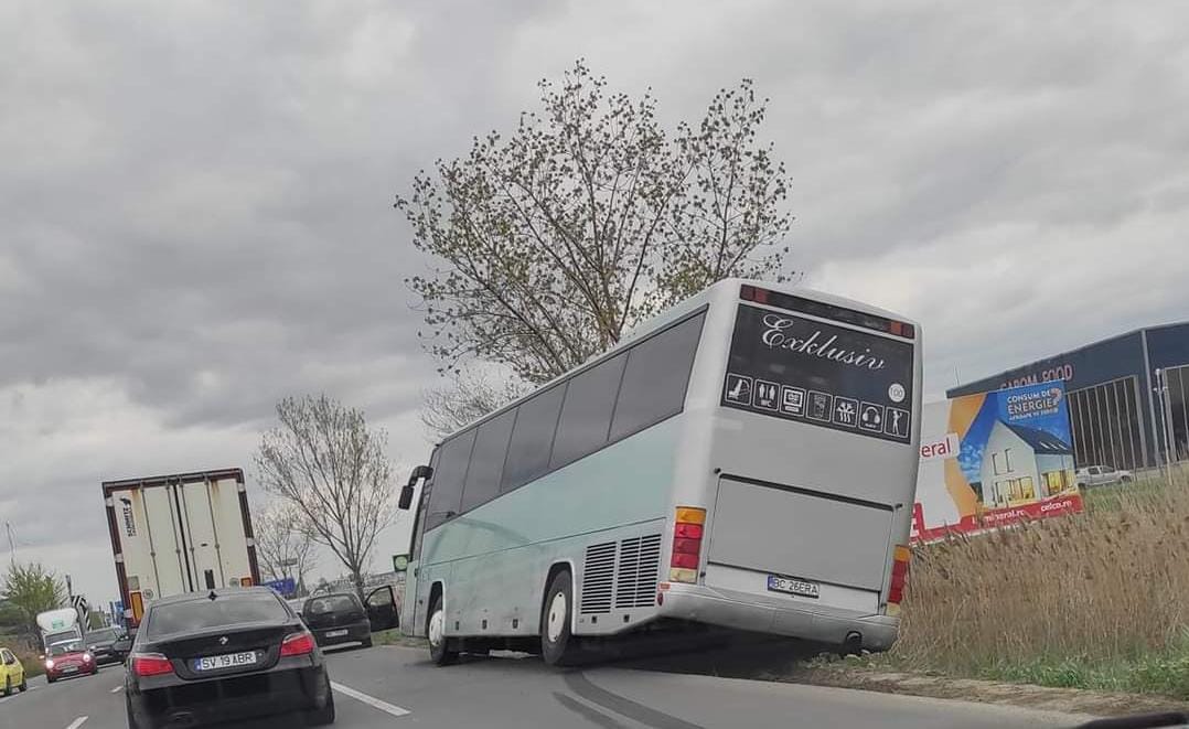 La locul accidentului se deplasează două microbuze pentru a prelua pasagerii şi se lucrează pentru repunerea în trafic a autocarului.