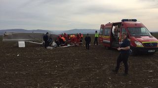 2 din 5 | Un avion de mici dimensiuni a aterizat fortat pe un camp din Alba. Pilotul, preluat cu un elicopter SMURD