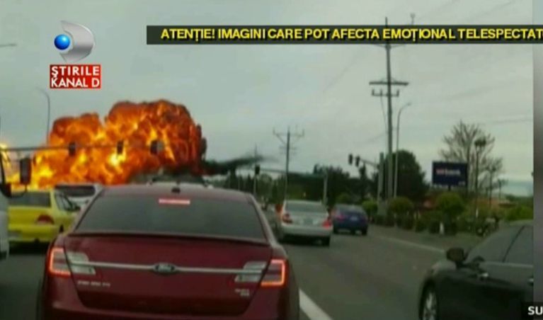 2 din 3 | Un avion s-a prabusit pe un bulevard aglomerat al unui oras din SUA. Imaginile cu impactul devastator au fost surprinse pe camere