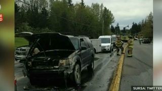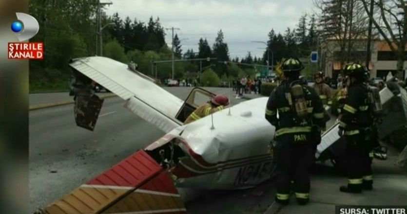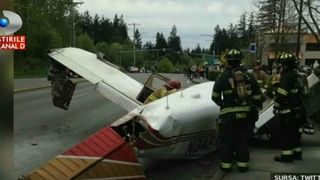 Avionul cu un singur motor abia decolase de pe un aerodrom din statul american Washington cand pilotul a descoperit ca aparatul pierde din altitudine. A incercat sa evite soseaua aflomerata, dar n-a mai putut face mare lucru. Din fericire, totul s-a terminat cu bine.