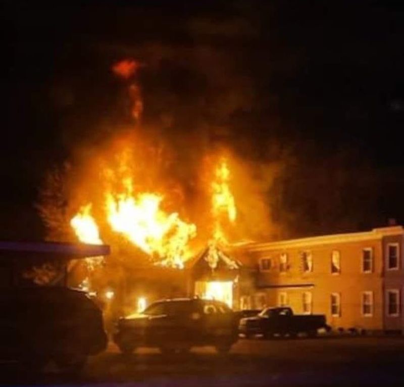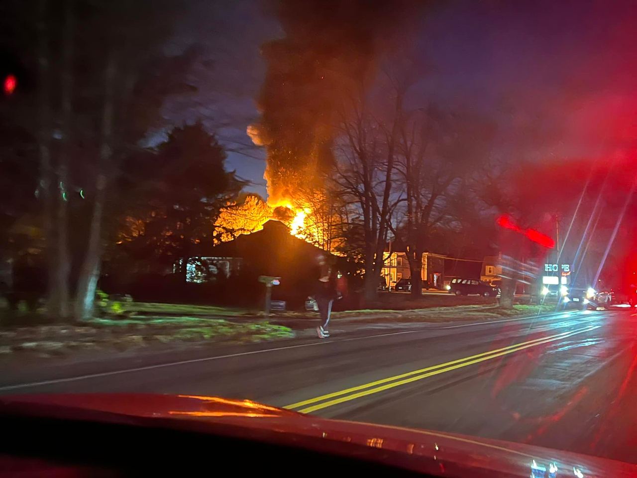 Videoclipul scenei surprinde flăcări masive care izbucnesc și un fum întunecat care iese din clădire.