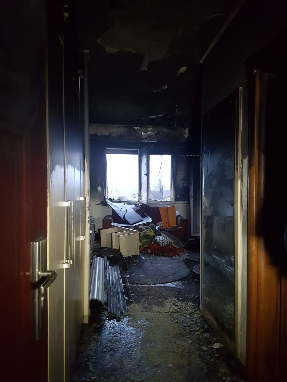 In urma incendiului, apartamentul a ars in totalitatate. Mai multi locatari au fost evacuati din cauza fumului dens, printre ei si un bebelus de 11 luni.