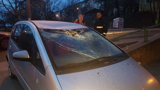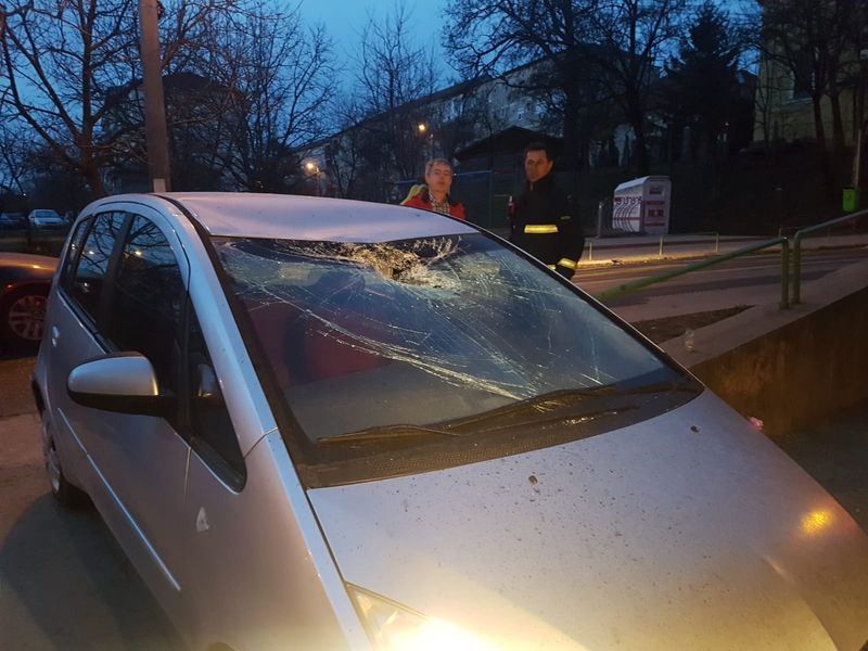Victima a avut noroc ca a cazut pe o masina parcata, asa ca a scapat cu viata. A fost transportat la spital cu multiple leziuni, dar este in stare buna.
