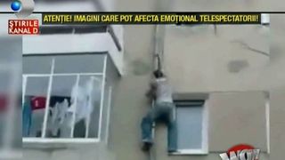 Un barbat a fost filmat cand incerca sa escaladeze un bloc. Trecatorii l-au privit cu sufletul la gura si muti de uimire! Imagini cu un puternic impact emotional!