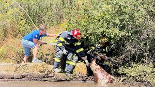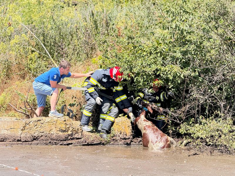 Bărbatul a murit înecat. Vițelul a fost scos din apă în viață de echipajele de pompieri.