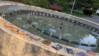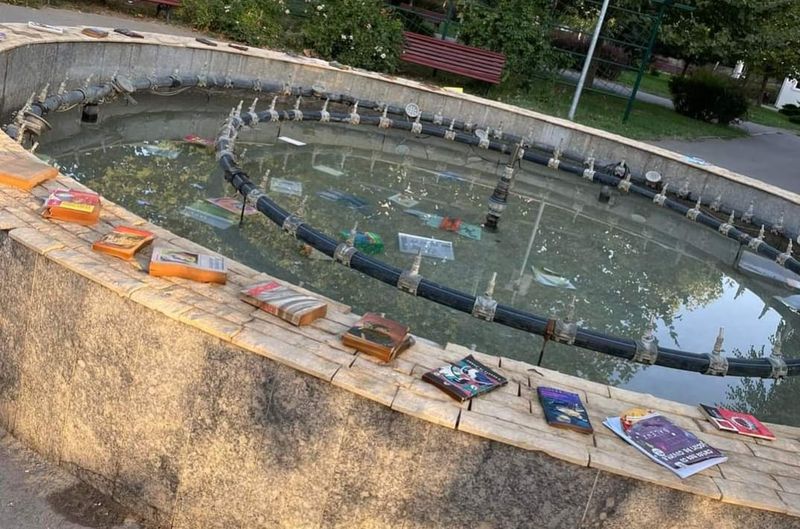 Vandalul a aruncat cărțile într-o fântână arteziană și a distrus căsuța amplasată