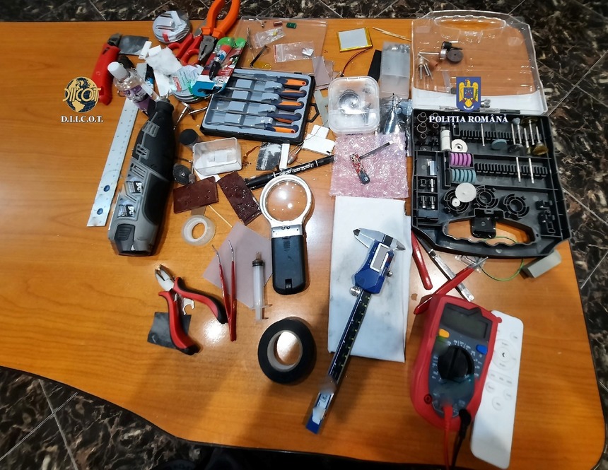 Bărbatul este suspectat că asambla dispozitive folosite la skimming, iar polițiștii au descoperit o cameră despre care suspectează că era folosită pentru fabricarea de astfel de dispozitive.