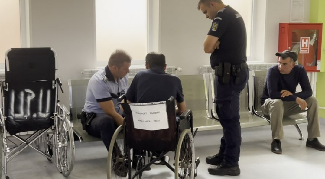 Un echipaj de Poliţie a ajuns la spital, iar agentul a descoperit că modelul de cătuşe pe care bărbatul le avea pe picior este scos din uz, motiv pentru care nu avea cheile potrivite.