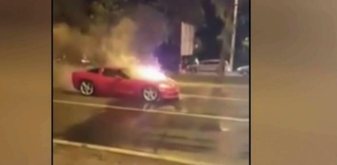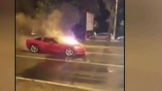 Un barbat din Braila a scapat ca prin minune, dupa ce masina pe care o conducea a luat foc. ##VIDEO20257##