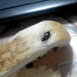 Un barbat din Hunedoara a avut parte de un "cadou" extrem de neplacut atunci cand a cumparat o paine de la o brutarie din municipiul Vulcan. Cand s-a uitat mai bine a vazut in produsul de panificatie un gandac.