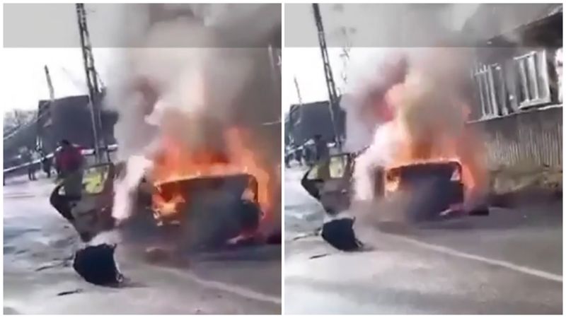 Șoferul a reușit să se salveze cu câteva secunde înainte ca mașina să se facă scrum! Localnicii au intervenit, urmând ca la scurt timp să ajungă și pompierii.