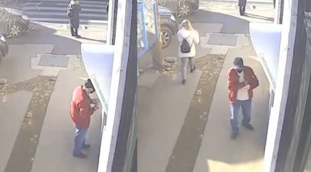 La câteva secunde după incident, un alt bărbat, care a ajuns în zona bancomatului, a sesizat suma de bani și s-a apropiat de ATM pentru a-i număra. Imediat după ce și-a dat seama despre ce sumă este vorba, individul a introdus bancnotele în buzunarul interior al hainei și s-a făcut nevăzut. Ceea ce nu a luat în considerare acesta este faptul că a fost surprins de camerele de supraveghere al sucursalei bancare.