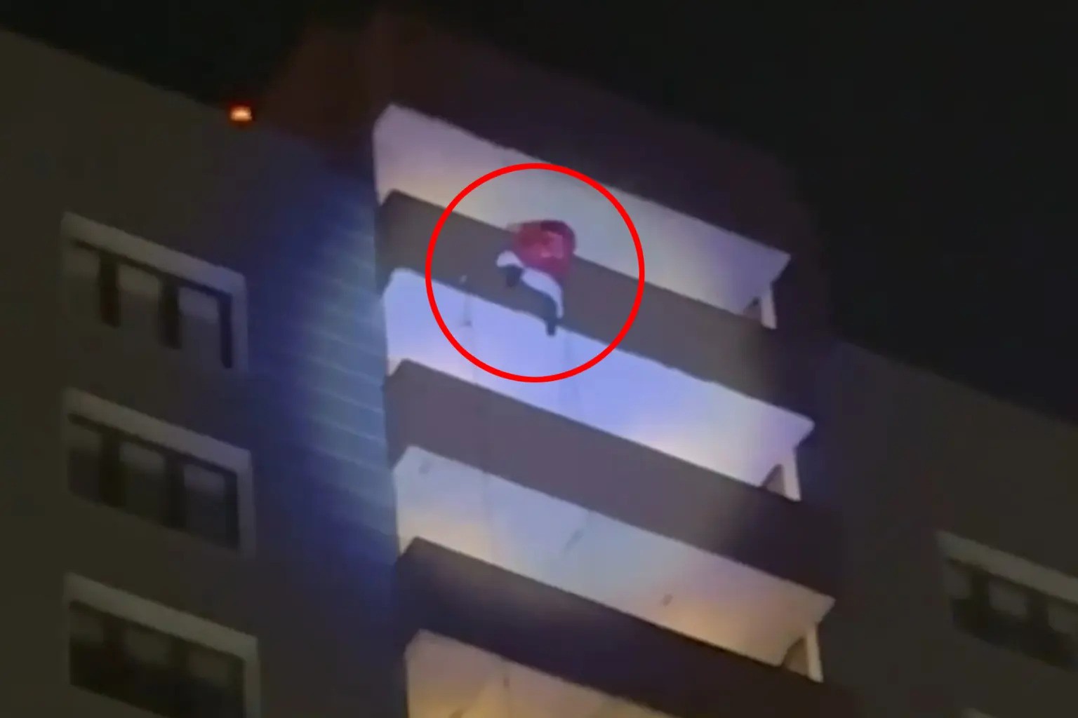 Un bărbat care era alpinist utilitar cu experiență a decis ca în acest an să facă o surpriză frumoasă copiilor din blocul în care locuia, dar și propriilor săi copii. El s-a deghizat în Moș Crăciun și a încercat să coboare cu funia pe fațada blocului.