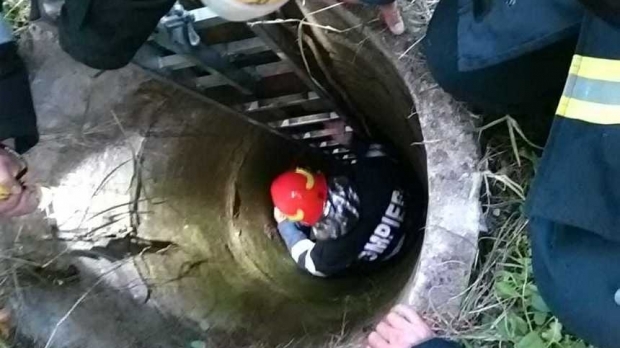 Când a ajuns acolo, echipajul de pompieri a găsit două persoane într-o fântână cu diametrul de 90 de centimetri şi cu adâncime de cinci metri, care nu avea apă. Ambele persoane erau conştiente, iar pomperii au intrat cu scara şi cu cordiţe pentru asigurarea victimelor, acestea fiind aduse la suprafaţă.