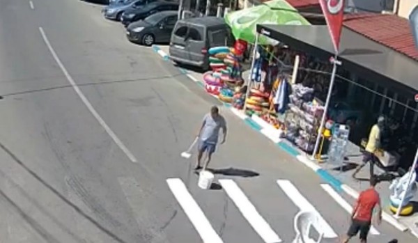 Prin această metodă, bărbatul este de părere că va aduce mai mulți clienți magazinului său în sezonul estival. Deși în locul respectiv nu este prevăzut legal o trecere de pietoni, bărbatul a fost surprins în acțiune de camerele de supraveghere.