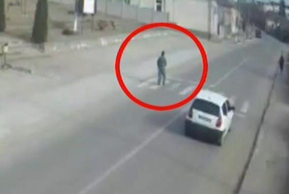 In loc sa opreasca, desi batranul se zbate pe asflat, primul sofer il ocoleste.