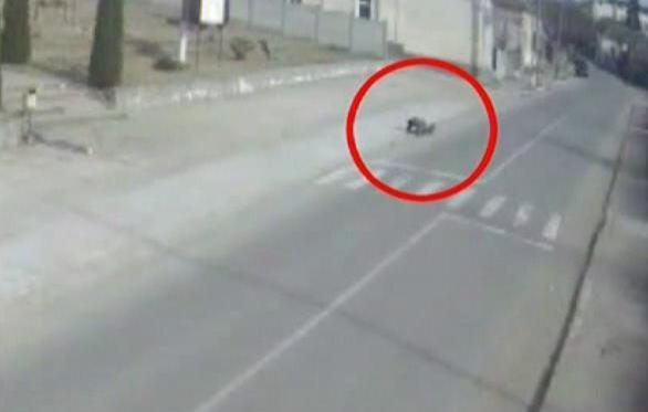 Apoi, se prabuseste. Cu ultimele puteri, incearca sa se tarasca din drum. E momentul in care o masina se indreapta spre el.