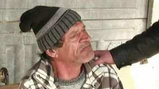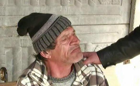 Batranul care se impleticeste in baston, pe sosea, se numeste Virgil Caraicatean si are 57 de ani. Nu bautura il face sa nu se mai tina pe propriile picioare, ci boala de care sufera. Semiparalizat, i se face rau in fata Primariei. Cu mana pusa in piept, de durere, mai rezista doar 30 de secunde.