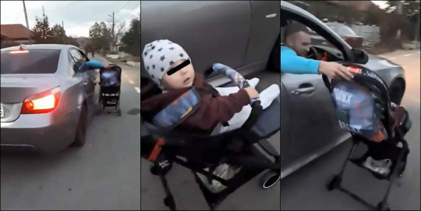 O dovedeşte o filmare postată pe Facebook, în care părinţi inconştienţi îşi plimbă bebeluşul aflat în cărucior dintr-o maşină aflată în mers. Grozăvia are loc pe o stradă din Târgu-Jiu.