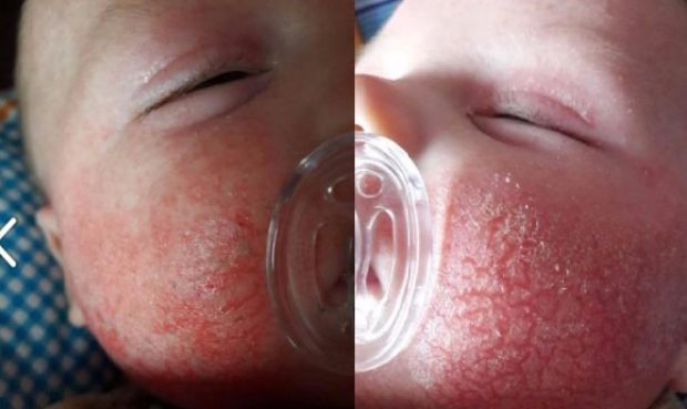 Un cuplu de romani care locuiesc in Marea Britanie si-au dus bebelusul de patru luni la spital fiindca ii sangera fata. Medicii de acolo au decis sa il trateze cu creme, iar acum o eczema urata i-a aparut pe fata.