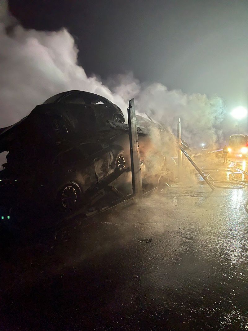 Potrivit presei locale, atât camionul cât și cele opt autoturisme pe care le transporta au ars în întregime. Din fericire nu s-au înregistrat victime.