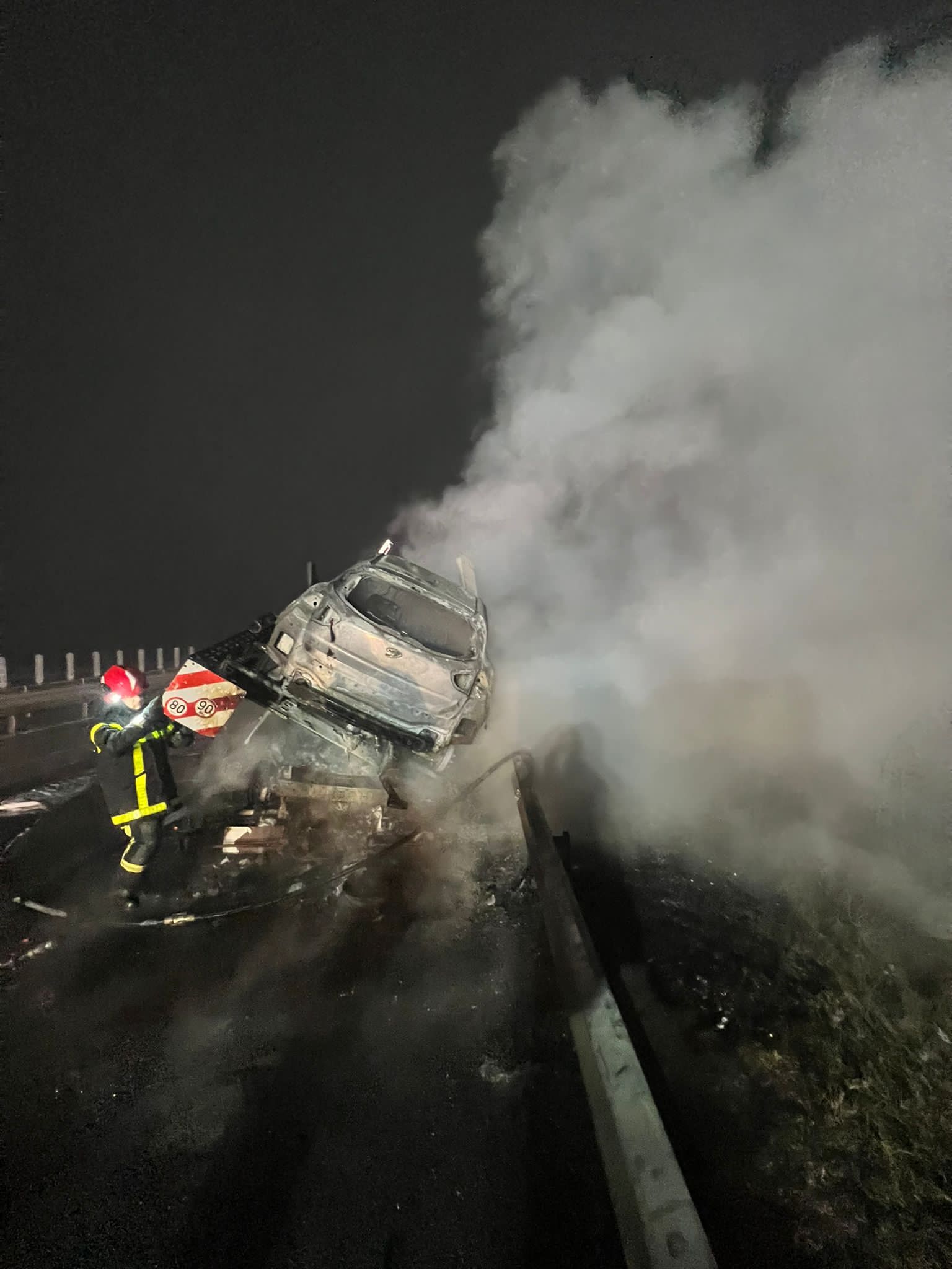 „În această noapte, în jurul orei 01:00, pompierii arădeni au intervenit cu două autospeciale de stingere cu apă și spumă pentru lichidarea unui incendiu izbucnit la un automarfar încărcat cu opt autoturisme, pe A1, la km 535 – sensul de mers Timișoara-Nadlac", au anunțat reprezentanții ISU Arad.