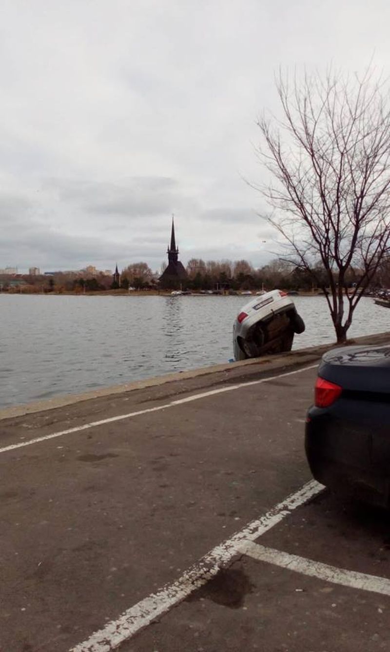O mașină aflată în parcarea unui mall din Constanța a ajuns în lacul Tăbăcăriei, din apropiere. Cei care au observat incidentul au sunat la 112. La scurt timp, proprietarul autoturismului care a ajuns în lac a venit la fața locului.