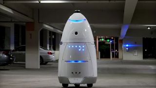 Un astfel de robot inlocuieste un paznic uman, costurile cu acestia fiind mai mici decat salariul lunar al unui agent de paza.