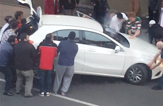 Acesta este momentul dramatic in care aproximativ 15 oameni incearca sa scoata un copil de 7 ani de sub o masina.