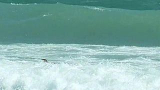 Sunt valuri atat de puternice incat nici salvatorii nu reusesc sa aduca trupul victimei pe uscat. Priviti cum se chinuie sa tina victima cu capul la suprafata.