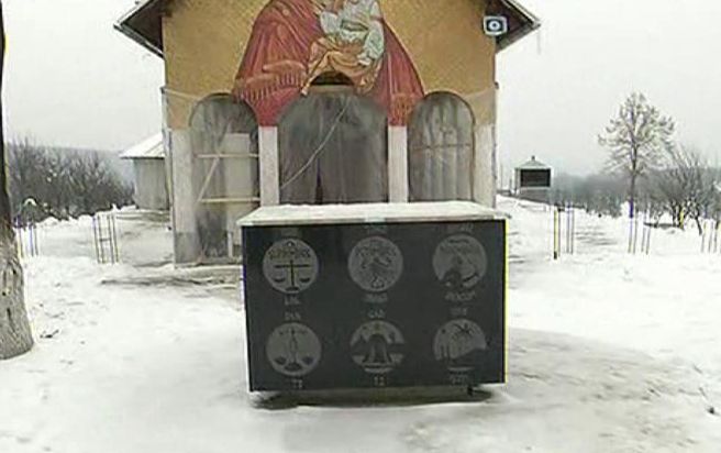 4 din 4 | Un cub misterios din fata unei manastiri din nordul tarii starneste rumoare printre credinciosi! Insemnele de pe fatetele sale nu par sa fie din Biblie, ci din zodiac.