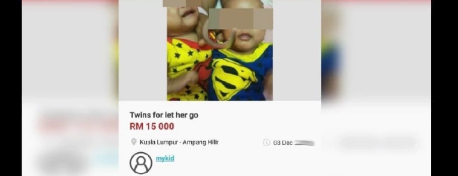 Incidentul a avut loc in Malaezia, unde politia s-a autosesizat, dupa ce o familie a publicat un anunt prin care ar fi incercat sa-si vanda gemenii. Cei doi, sot si sotie, au fost retinuti.