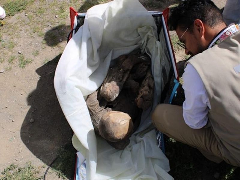 Experții arheologi au spus că mumia avea între 600 și 800 de ani vechime și că era mai degrabă cadavrul unui bărbat adult decât al unei femei, așa cum a presupus bărbatul care a fost descoperit