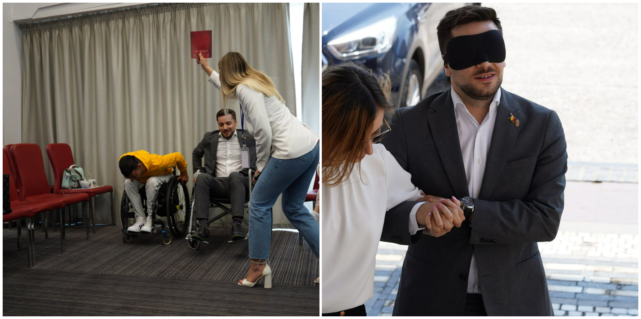 Filip Havârneanu, un deputat USR a participat la un atelier de conștientizare din cadrul Caravanei USR Dizabilități, care l-a transformat într-un om cu diverse deficiențe.
