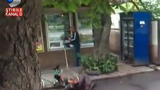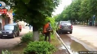 1 din 3 | Un "Dorel" beat isi pune viata in pericol. Abia isi tine echilibrul, iar in mana tine o motocoasa. Cine il salveaza
