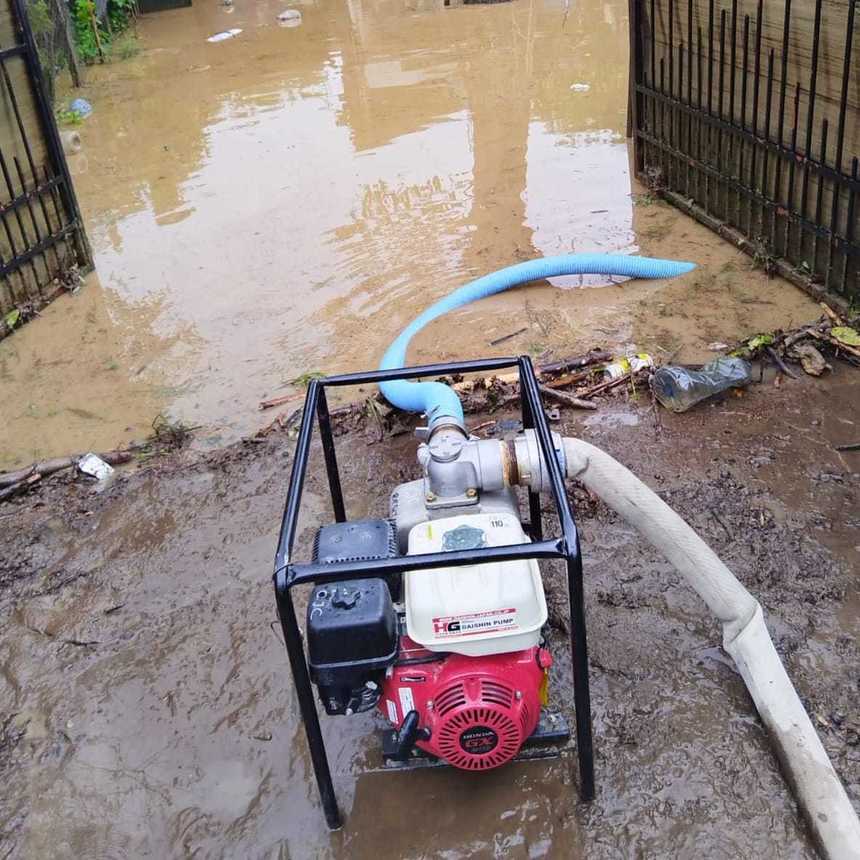 ” Totodată se acţionează pentru evacuarea apei din pivniţa unei gospodării din aceeaşi localitate ”,