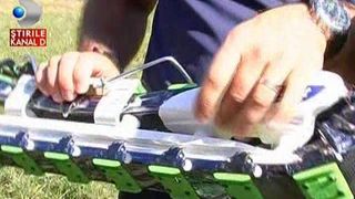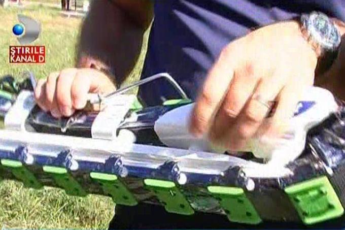 „Sunt construite, de fapt, la fel cum sunt si cele de iarna, din partea centrala care este din lemn. O banda metalica pe care se invart rolele, cureaua pe care stau placile care au contact cu iarba”, povesteste brasoveanul.