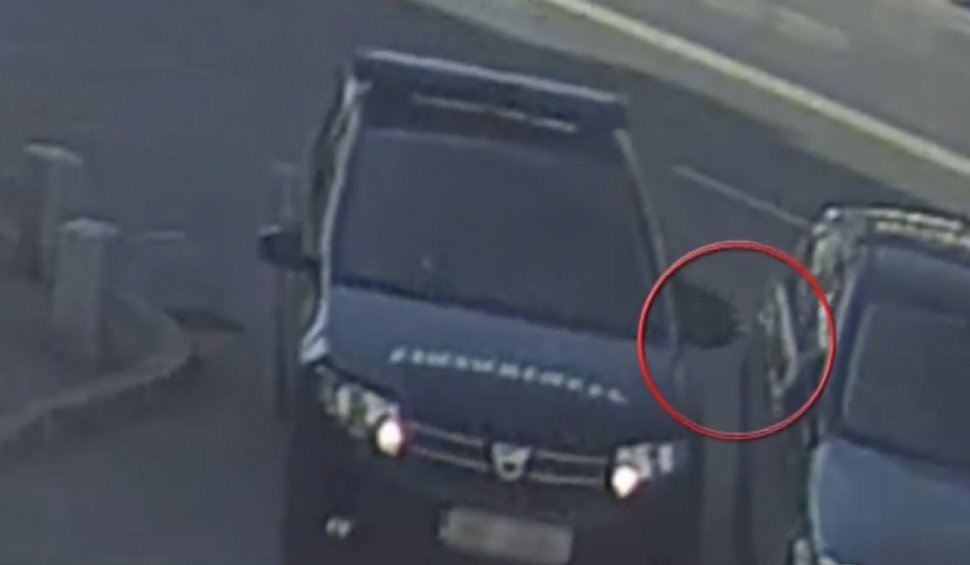 În imaginile filmate se observă cum la un moment dat în dreptul mașini parcate apare un echipaj al Jandarmeriei. Acesta se oprește preț de câteva secunde, dă cu spatele, iar mai apoi trece foarte aproape de autoturismul lăsat pe avarii. Șoferul autospecialei scoate mâna pe geam și zgârie mașina cu un obiect.