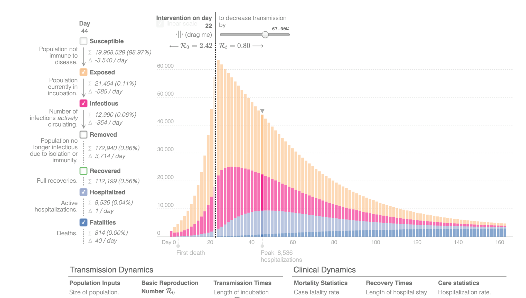 „Intre variabilele mele, majoritatea sunt valori destul de universal valabile, si testate deja in China si alte tari, si deci aproape de realitatea de la noi. Ce avem noi particular? 2 variabile. 1. Compliance rate al distantarii. Eu am ales 67%. Care este general acceptat ca fiind destul de realist. Adica 2 din 3 oameni respecta destul de serios distantarea sociala.