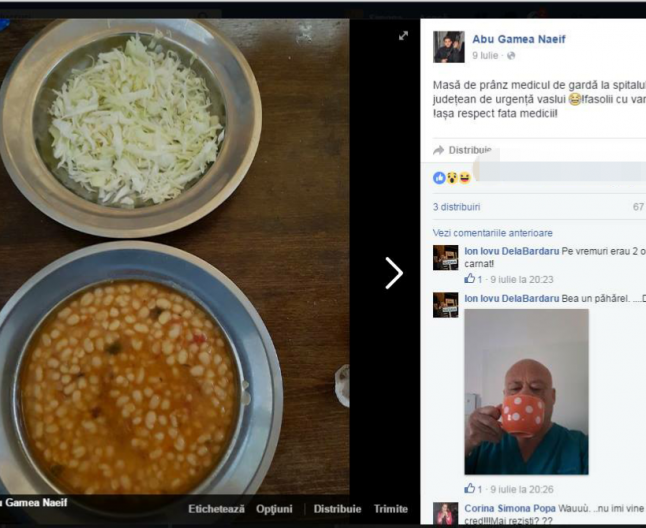 2 din 3 | Un medic de la spitalul judetean de Urgenta Vaslui, revoltat ca primeste la masa de pranz "fasolii cu varza"