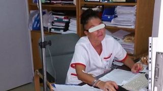 "Am ramas surprins cand am vazut-o ieri dimineata, putin dupa ora 9.00, pe Lidia Punkosti, asistenta sefa a sectiei noastre, lucrand, crispata de durere, cu perfuzia alaturi. Desi m-a rugat cu cerul si pamantul sa nu fac publica aceasta imagine surprinsa cu abilitatile mele de “fotograf de instantaneu”, eu, precum scorpionul din bancul cu broscuta, nu m-am putut abtine!
