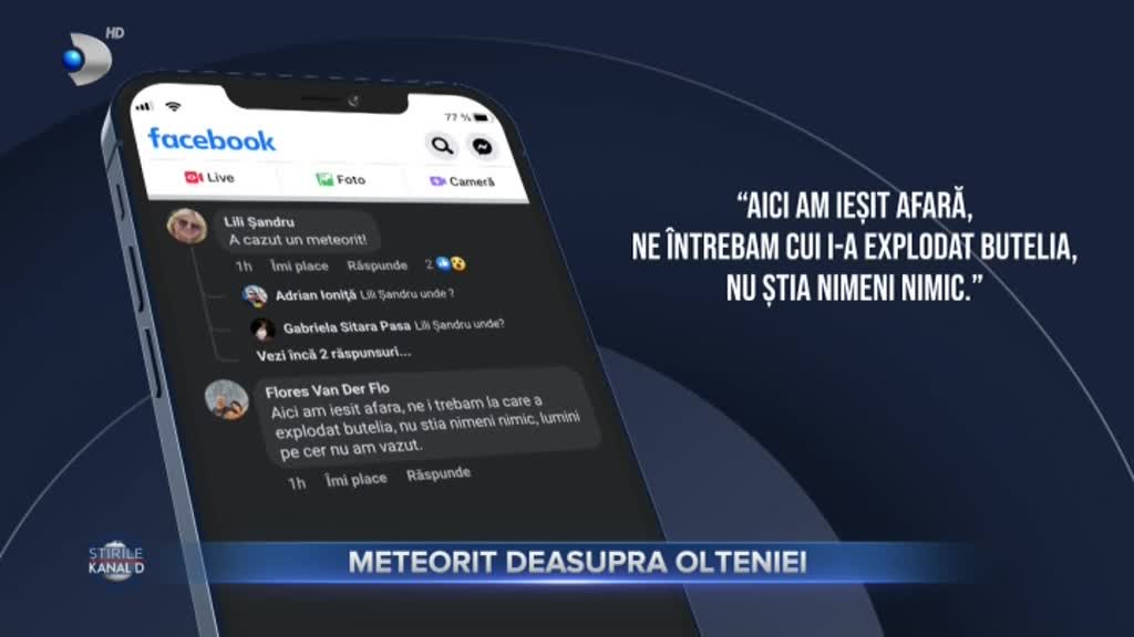 Este momentul în care, pentru o clipă, se face din noapte zi la Ciuperceni Noi, în Dolj. Lumina stranie, urmată de o bubuitură extrem de puternică i-a scos pe oameni din case, crezând că e vorba de un cutremur. Pe rețelele sociale, au curs sute de comentarii ale oamenilor înspăimântați de fenomen.