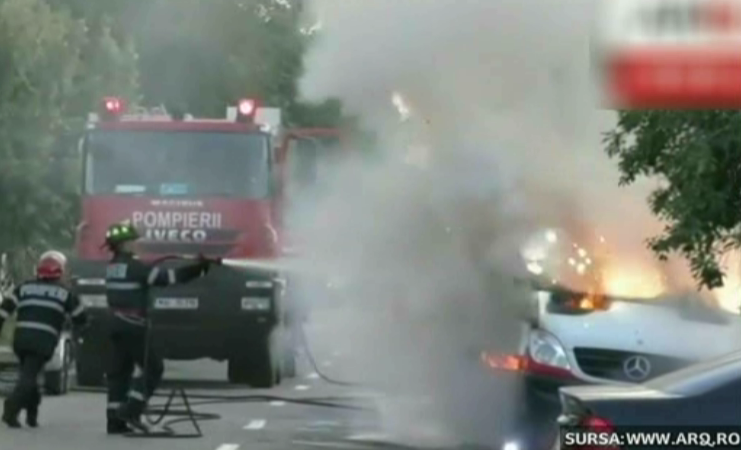 Un microbuz a ars ca o torta in numai cateva minute din cauza unei motociclete! Ce s-a intamplat